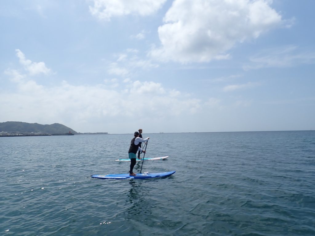 だんだんと逗子海岸方面からの風が強まったので風に向かってのサップ。サップの上でのおしゃべりも弾みます。