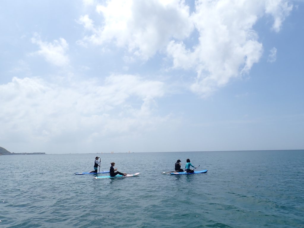 サップはのんびりするのがとても気持ちいいので沖でのんびりタイム。沖に出ると景色も良く鎌倉方面、葉山方面まで見渡せました。