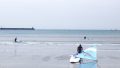 今日の逗子海岸のコンディションは、爆風オフショアコンディションでした!!!見た目では分かりづらいですが、風の強弱も強く、とても難しい練習になりました♪